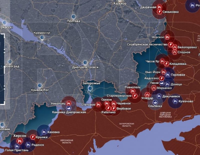 Вокруг Авдеевки бои, армия России инициативу не упускает, тяжелая боевая работа продолжается. На севере у АКХЗ ВС РФ атакуют вдоль лесополосы на запад, противник отходит – серая зона расширяется. Продолжаются бои в Степовом, село частично в серой зоне, частично — под нашим контролем. На южном фланге наша армия оттеснила ВСУ еще с ряда позиции в промзоне, продвигаются в сторону Северного и Тоненького.